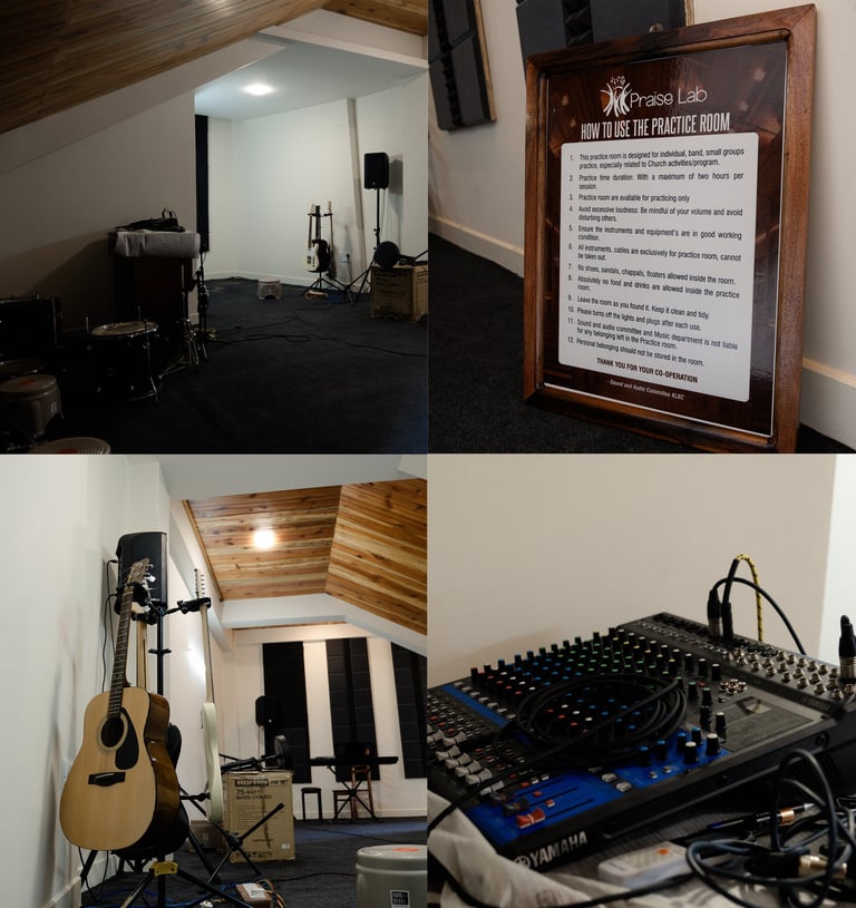 Rooted in biblical principles, the space encourages worshippers to use their gifts in accordance with Psalm 150:4–6 — “Praise Him with the tambourine and dance; praise Him with strings and pipe! Let everything that has breath praise the Lord!” The room is not just for skill-building but for spiritual growth through music, fostering a heart of worship and unity in Christ.